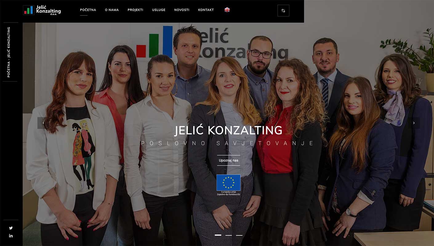 Realizacijom projekta izrade nove Web stranice, tvrtka Jelić konzalting d.o.o. poboljšat će svoju konkurentnost i ojačati tržišnu poziciju kroz poboljšanu primjenu mrežnih marketinških rješenja, u svrhu unapređenja prisutnosti na tržištu i vidljivosti usluga. Dizajn weba biti će osmišljen na način da zadovoljava korporativne standarde. U novi web će se implementirati i CMS pomoću kojega će prijavitelj kasnije sam upravljati cjelokupnim sadržajem, uključujući tekstove, prijevode, fotografije, galerije, video zapise i sl. Web se izrađuje kao višejezičan: hrvatski i minimalno 1 strani jezik.